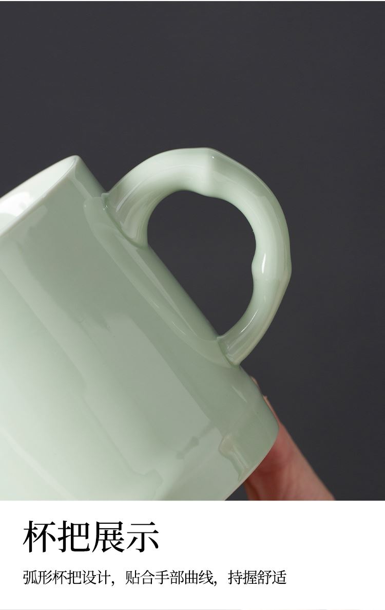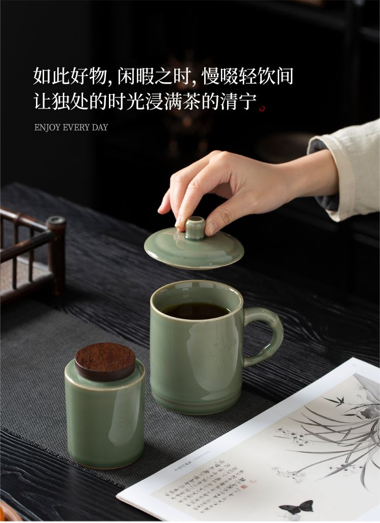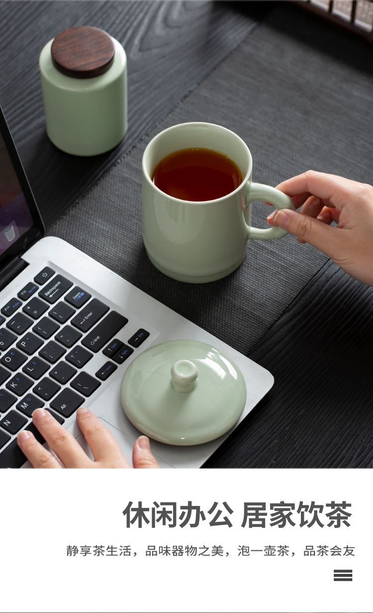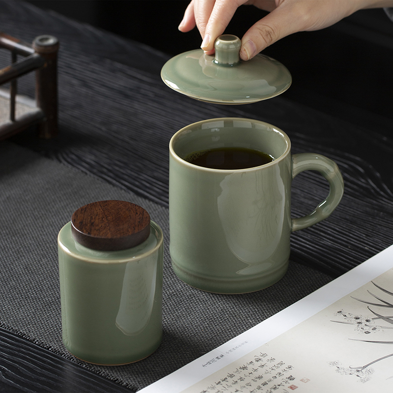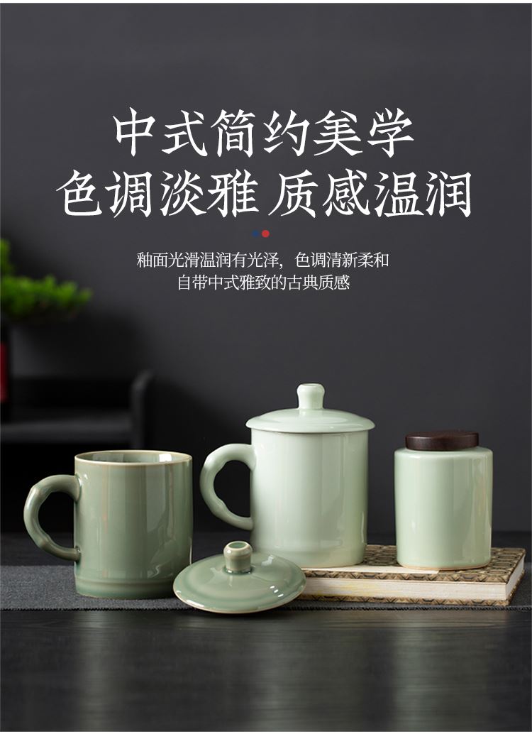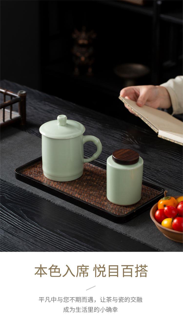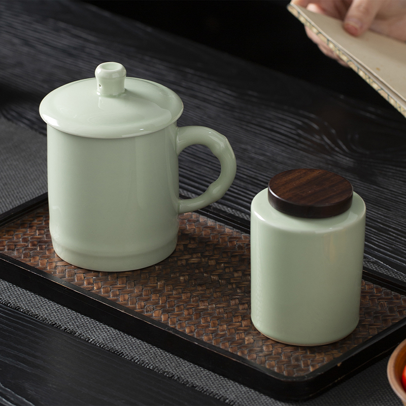 云博陶瓷青瓷竹节会议杯办公杯水杯配茶叶罐组合套装中国风礼品